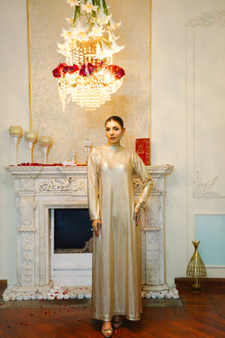 Rich, refined, and irresistibly elegant — Golden Hour celebrates radiance in its truest form. Tailored from premium silk, the outfit glows with soft gold undertones that capture the warmth of celebration. Designed for wedding festivities and formal occasions, it embodies pure glamour with minimal effort.
