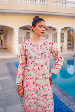 This 2-piece printed lawn outfit pairs a lightweight shirt with matching trouser—perfect for easygoing summer elegance.