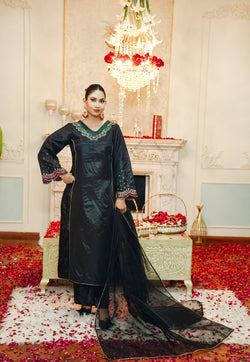 Graceful and timeless, Ivanir celebrates the art of handcrafted elegance. Designed on sumptuous silk, it features handmade lace accents and Embroidery with tills and sequin that skillfully intertwined to create a look that reflects both luxury and tradition. With its refined silhouette and subtle festive tones, Ivanir embodies a poetic balance between softness and sophistication.
