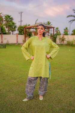 This 2-piece printed lawn set includes a beautifully detailed shirt and matching trouser—ideal for casual elegance and seasonal wear.